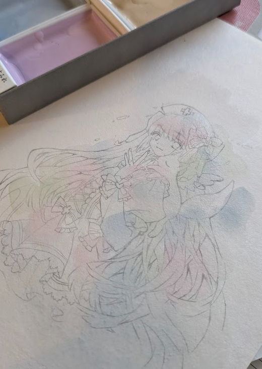ちなみに下塗りはこんな感じでザクザク進めていきました。薄く色を重ねていくとほんとにかわいい…