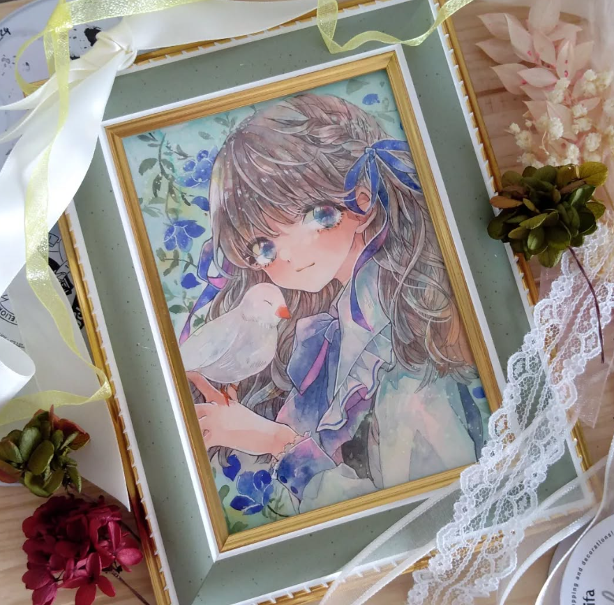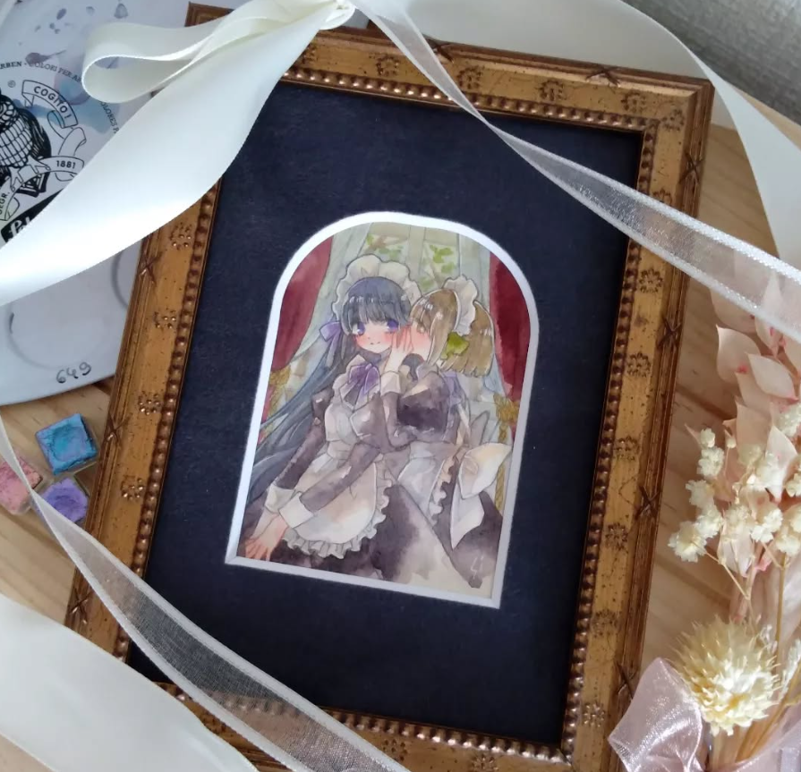 セルフ額装作品は多すぎるので、一部しか載せていませんが、画材店に依頼した作品は多分すべて載せています!「額装するとこんな感じになるんだな~」という感じで、なにかの参考になれば幸いです^^