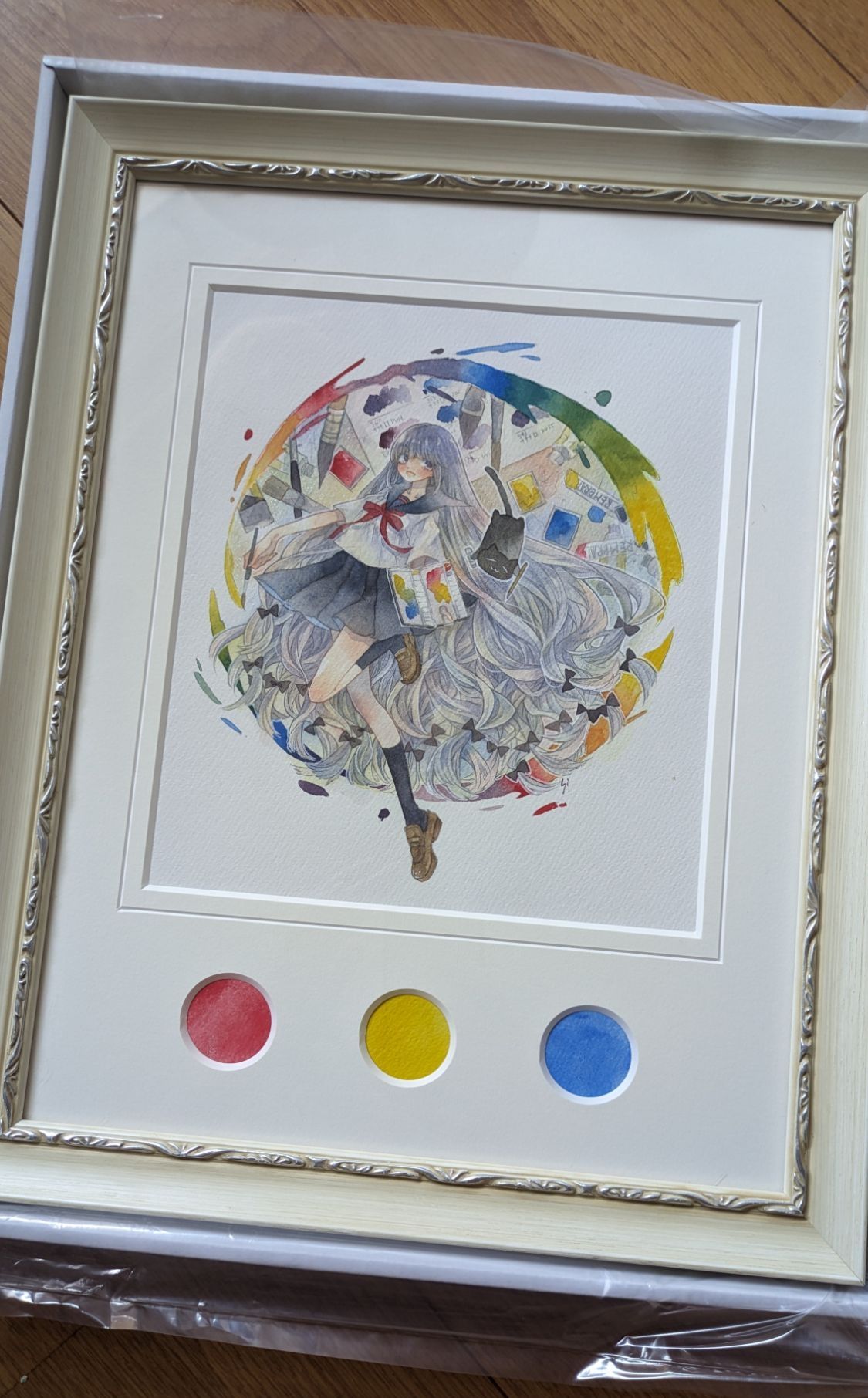 こちらは、ARTs*LABo HQ EX 04に出した作品ですね~。額は多分ロッサの白です。コンセプトとしては先程の「Color Circle」と一緒。まっちの三原色を使っているので、イラストの下に配置してみました。