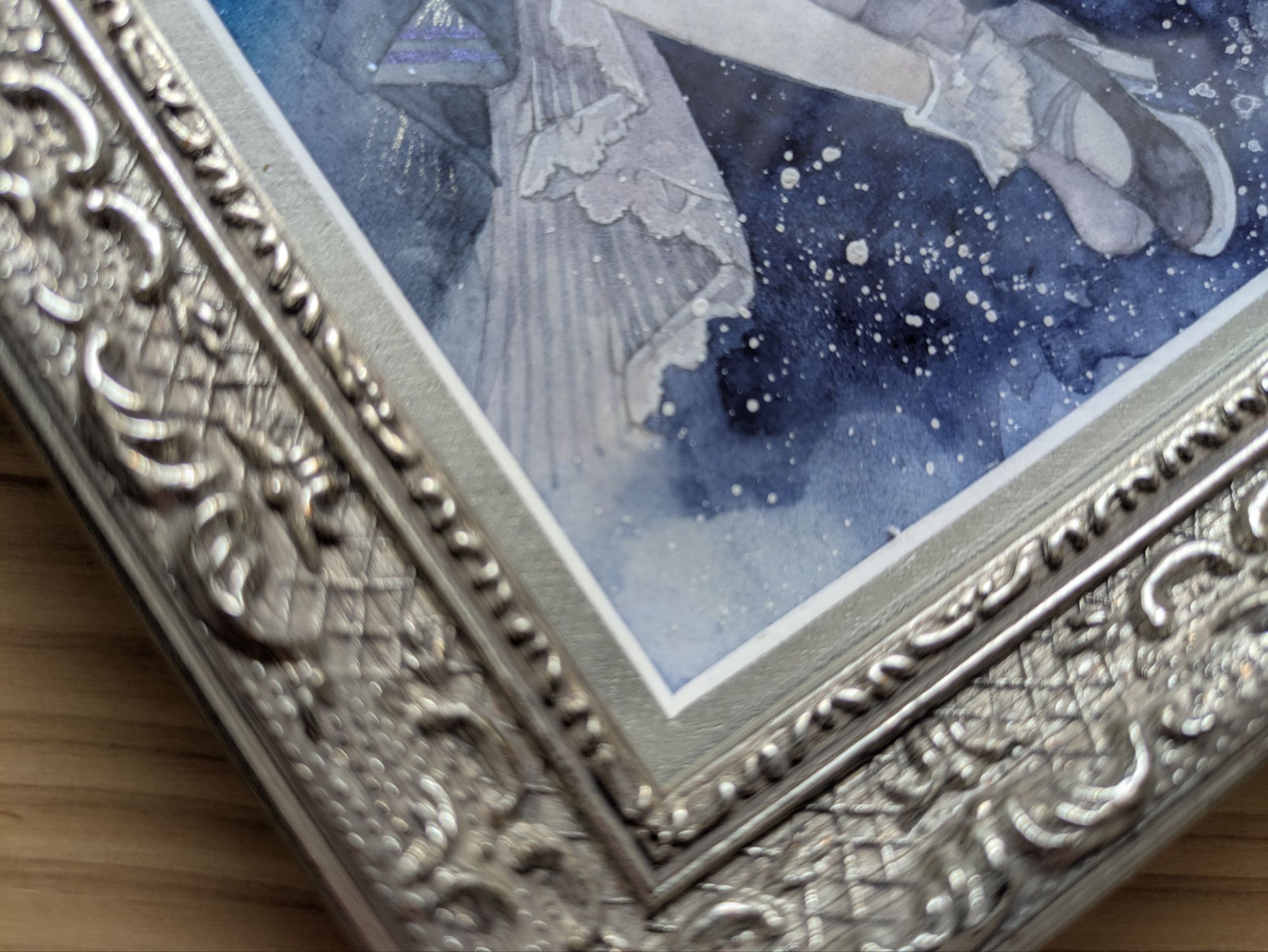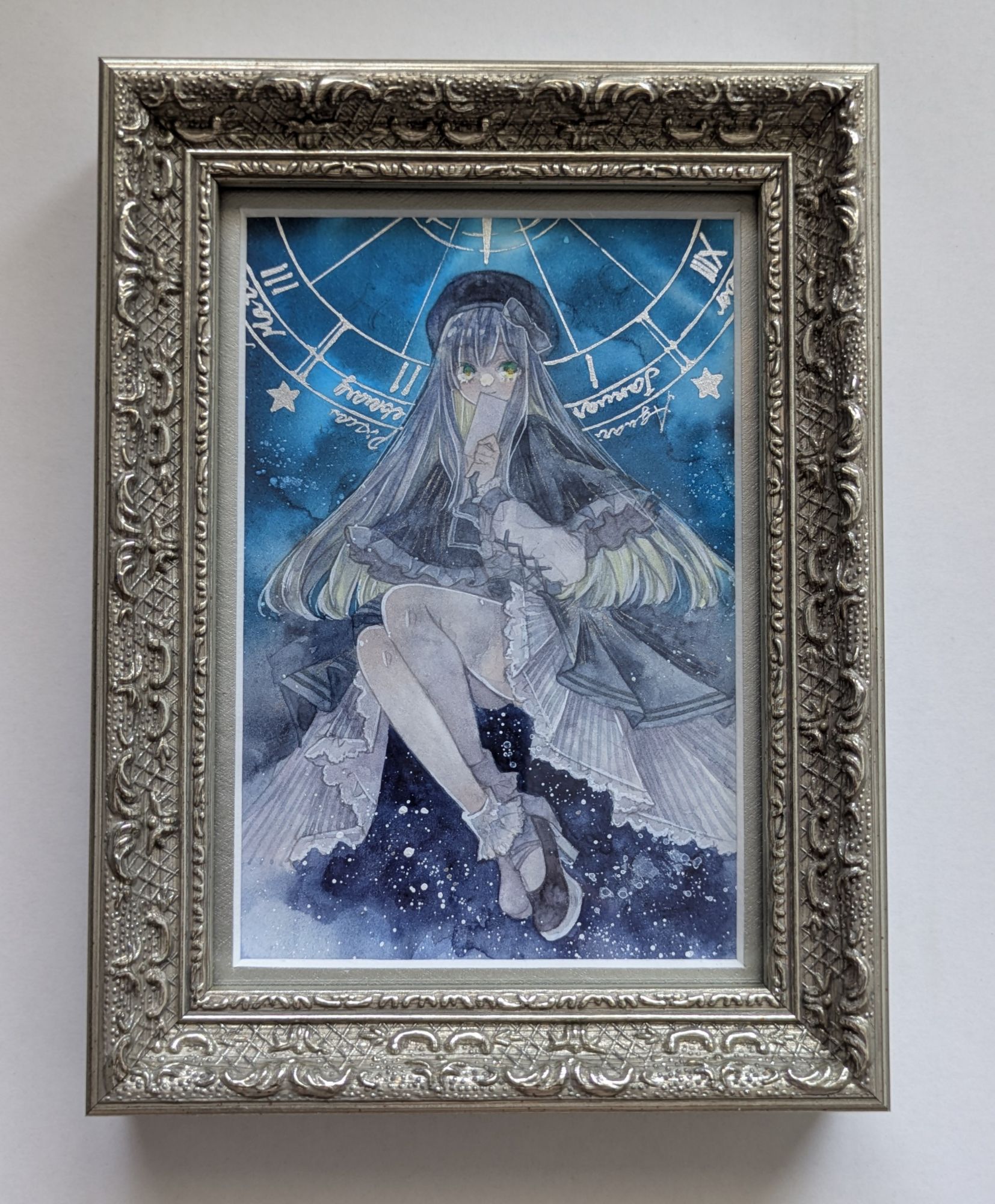 こちらが、ペイトの人生初!の画材店に依頼した額装作品です!シャルムの銀のフレームで、インチサイズです。ARTs*LABoさんのHQ EXhibition 01に出した作品でした。