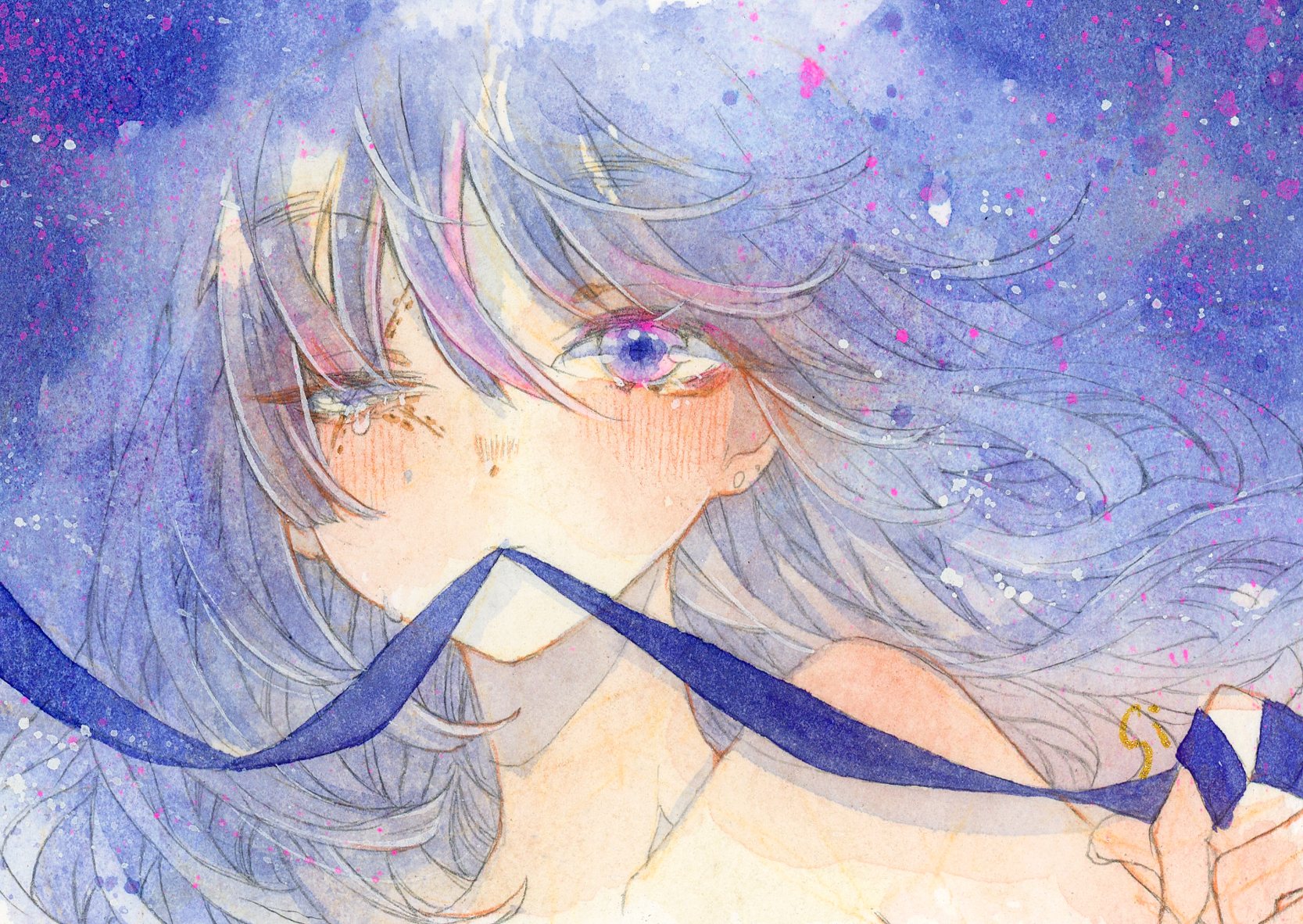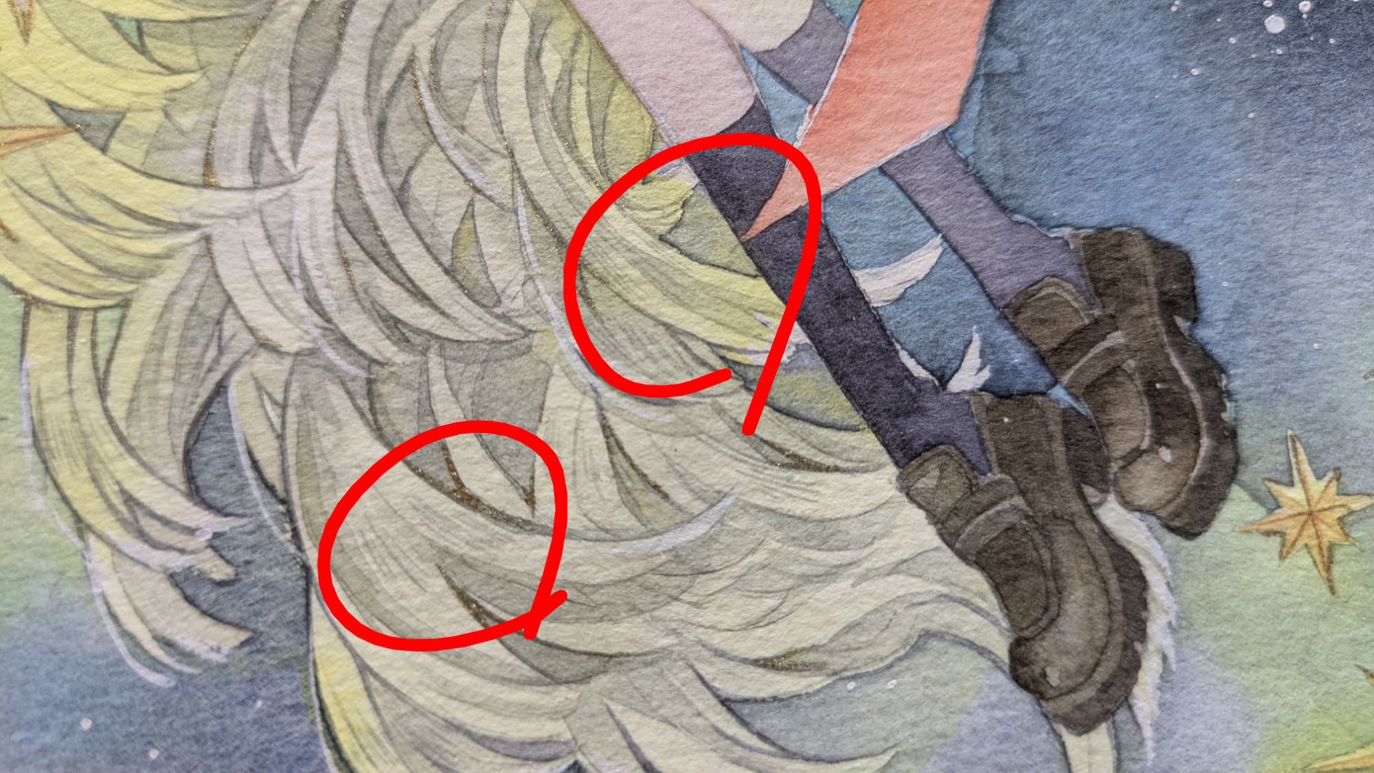 最後!透明水彩でイラストを描いていると、どうしても水彩絵の具だけを使いがちですが、何使ってもいいいんですよ?
