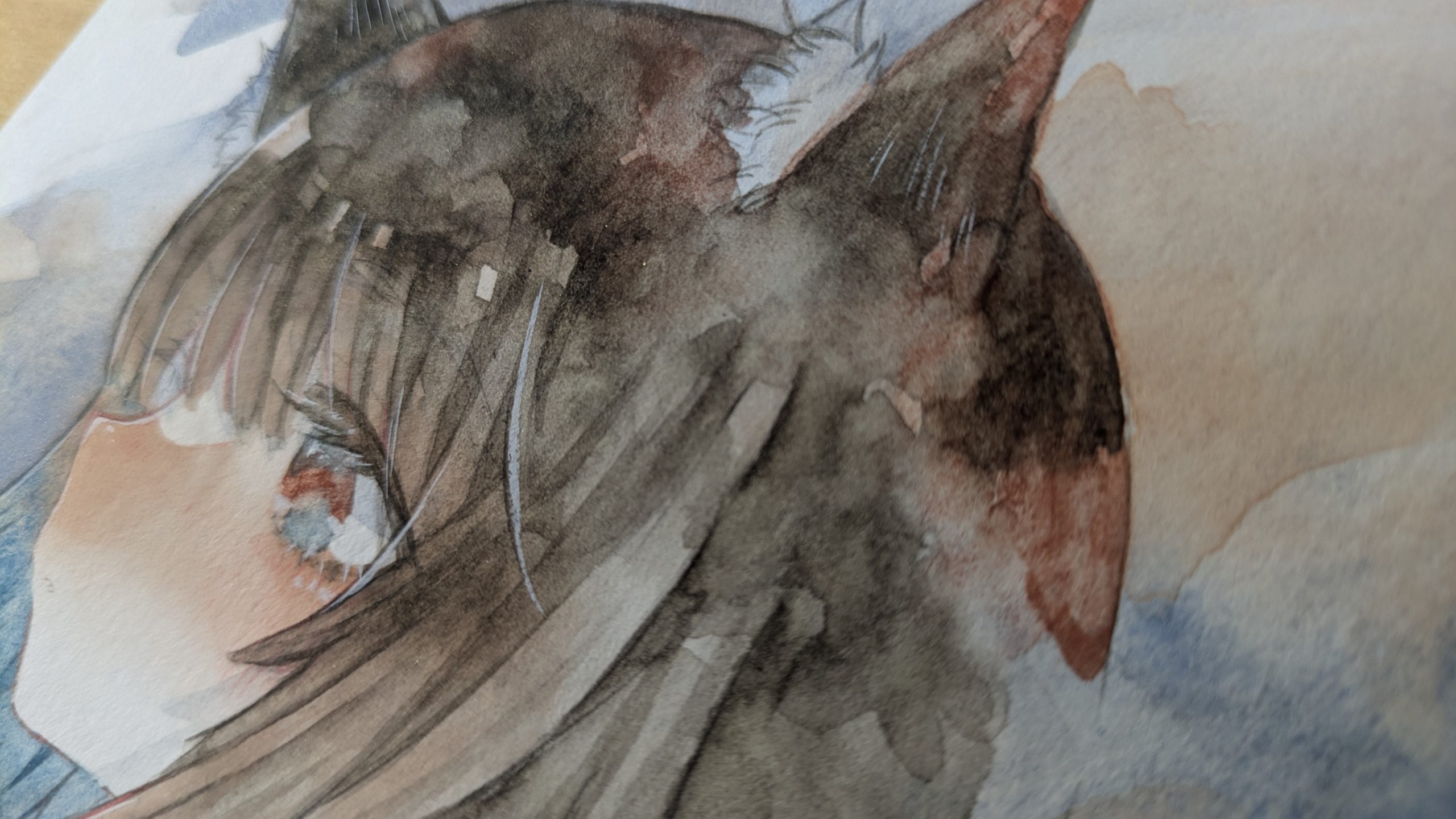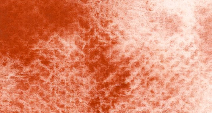 モヤモヤっとした赤茶色の絵の具!粉っぽい感じの粒子が紙目に残るので面白いです!