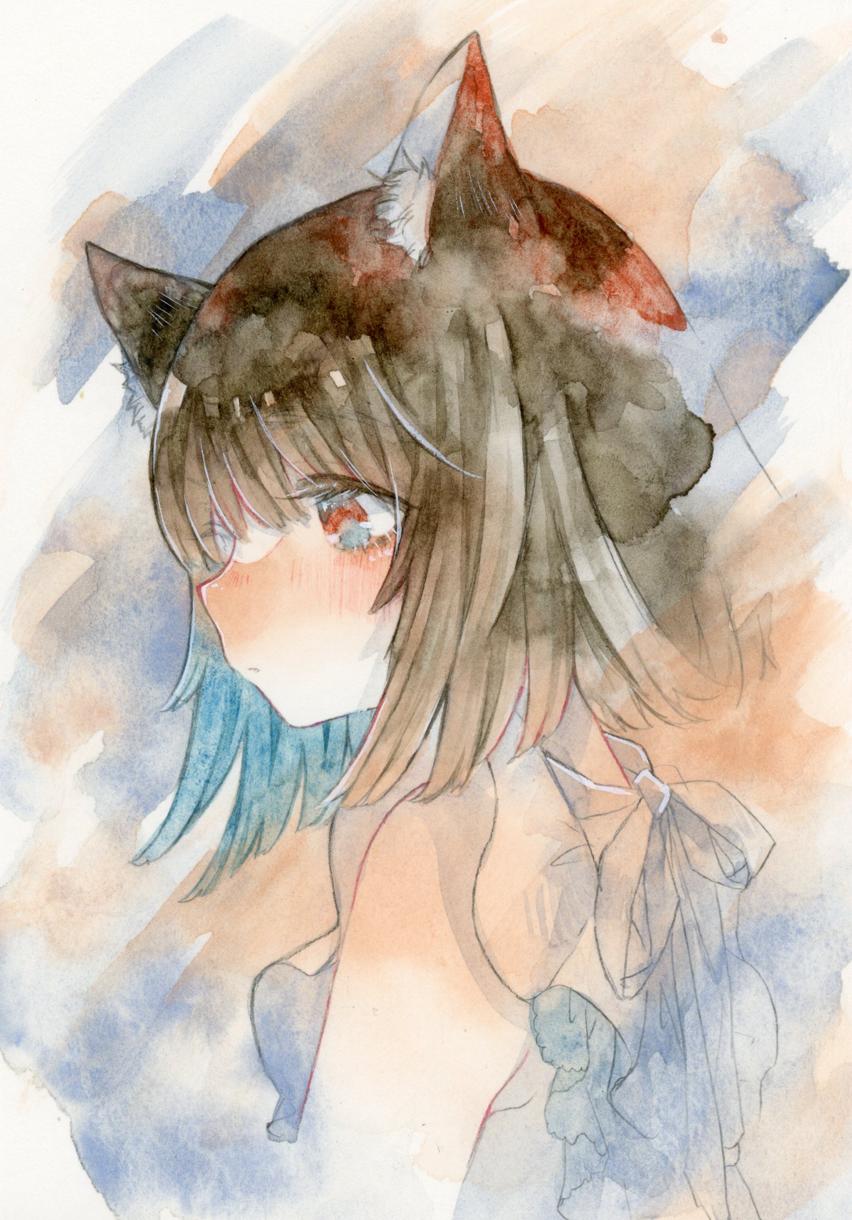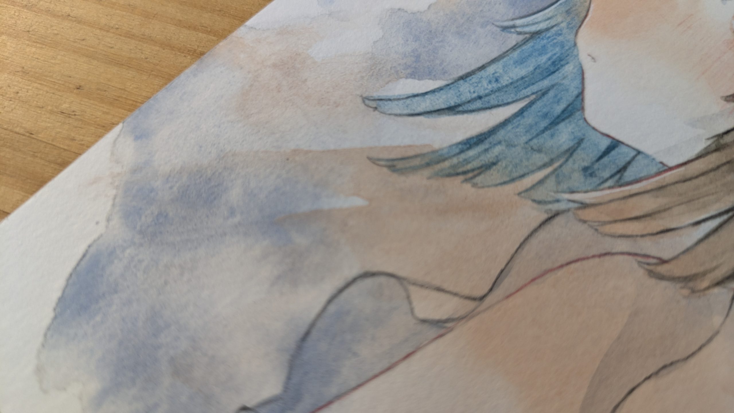下塗りにラピスラズリとレッドマーブル、髪の毛にシャッフルグレーとレッドジャスパー、アズロマラカイトを使っています。(肌は手持ちの絵の具を使いました)