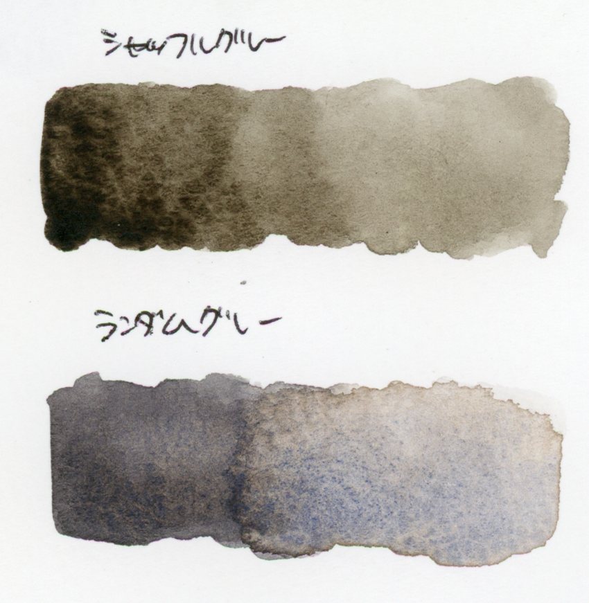 ついでに塗り比べてみましたが、シャッフルグレーはどちらかというとブラウンよりの色で、ランダムグレーは青み寄りのグレーで、両者だいぶ違いました。