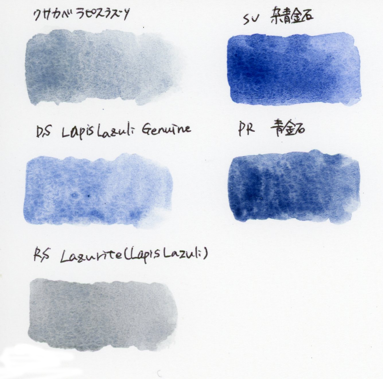 手元にいくつかラピスラズリ系の絵の具があったので、比較のため塗ってみました!